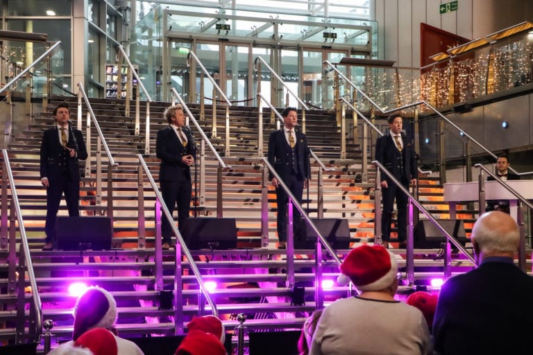 Oh yes, and what a performance it was! Prior to their concert at Birmingham Town and Symphony Hall as part of their “G4 Christmas”, the boys took to the steps of our multi-award-winning venue to give an intimate and magical free preview to fans and lovers of all things Christmassy. The operatic four-piece rose to fame on the original series of the X Factor.  They reunited in 2014 after disbanding in 2007, with the release of their first post-reunion album ‘G4 Christmas’ followed by a Christmas tour, a tradition which has continued and grown in the years since. One attendee commented, “It was magical, truly breath-taking and I couldn’t have picked a better place to see them than here!” During the performance, the group laughed and chatted to the crowd and afterwards posed for photos before heading off to prepare for their full show.