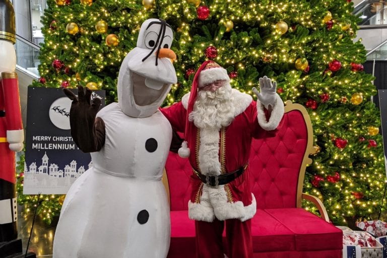 The light switch on wasn’t the only time Santa came to Millennium Point. Santa appeared for several meet and greets over the holiday period. Sitting underneath our Christmas tree on a red and gold throne, accompanied by a nutcracker either side and a mountain of presents; Santa met and handed out gifts to families from all over Birmingham in this completely free series of events. He asked the children for their Christmas lists, posed for photos and brought the excitement and magic ahead of the big day. Alongside the meet and greet, the children were also treated to an assortment of free activities including face painting, games and dancing with Olaf from Disney’s Frozen! We also hosted exclusive meets with Santa for several SEND groups, including a dedicated event for Calthorpe Academy, a 2-19 special needs school in Birmingham city centre.